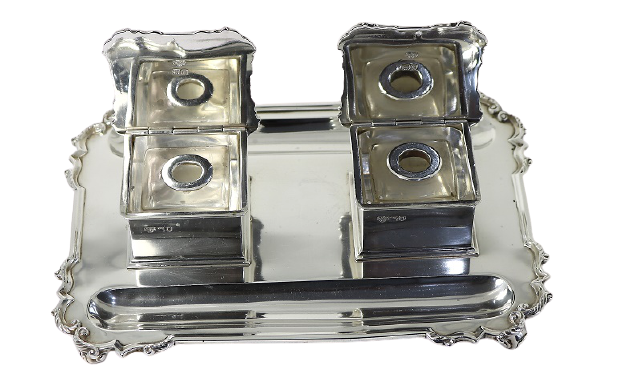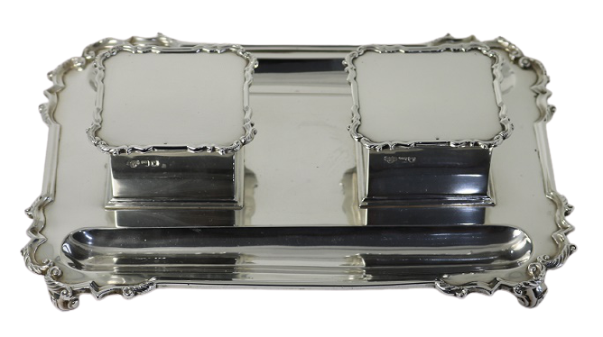 Antique Silver - Antique Solid Silver Double Desk Inkstand – Goldsmiths & Silversmiths Co., London 1910