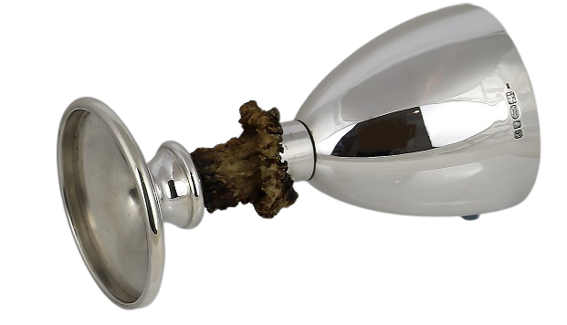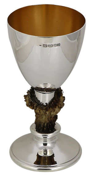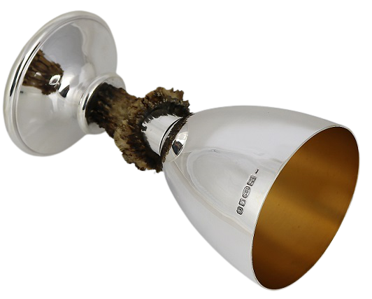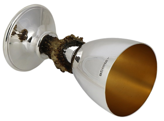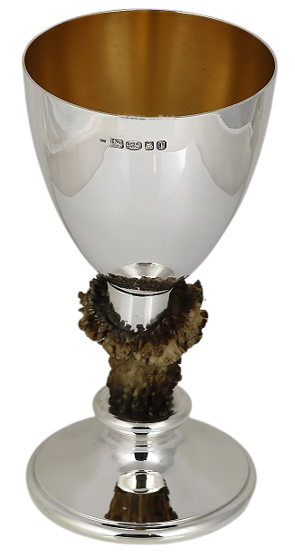 A superb solid silver goblet, crafted in 2011 by master silversmith Greg Dennis of Mayfair, London. Made to an exceptionally high standard, this luxury goblet features a unique stag antler detail and is of a very substantial gauge of silver — weighing over 300 grams of solid sterling silver.