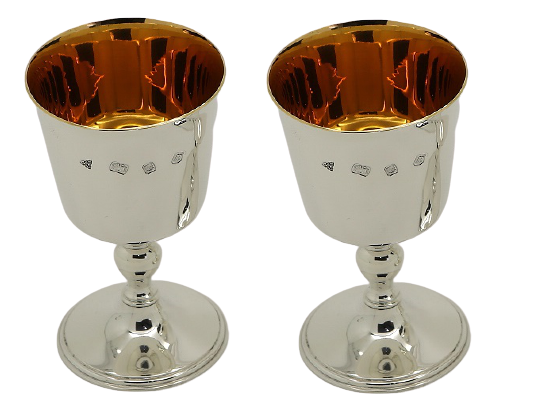 The goblets bear bright and clear feature hallmarks for London 1968, confirming their authenticity and fine heritage. Their quality is further reflected in their impressive weight – a substantial 162 grams each – and generous proportions: 12 cm high with a 7 cm bowl diameter.