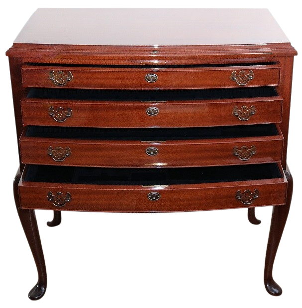 This is not simply storage furniture. It is part of the whole experience of owning fine silver — a piece that protects it, presents it properly, and adds to the sense of occasion every time it is opened.