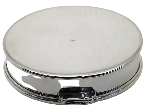 This substantial box is of the very finest quality, with a hinged lid, richly lined red velvet interior, and large feature hand-punched Asprey hallmarks to the base. Measuring 12 cm wide and 3 cm high, it is a beautifully proportioned piece of modern Asprey silver.