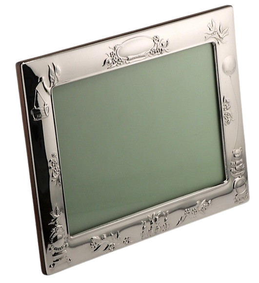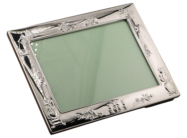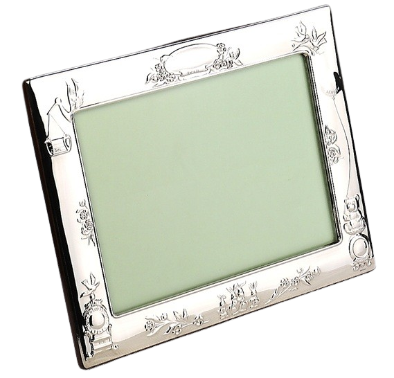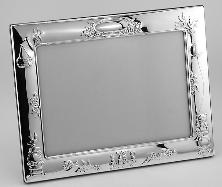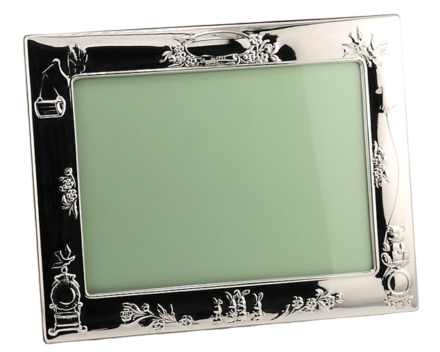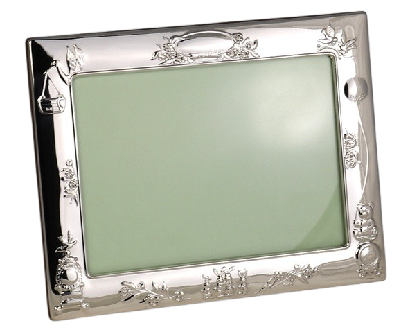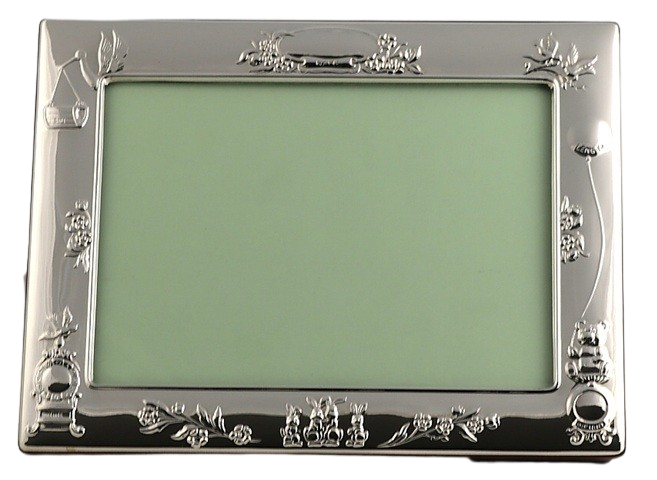 This elegant sterling silver photograph frame features a seies of characters - Stork, rabbits Bear etc. with a polished wood back, making it a timeless way to display a treasured baby picture. Fully hallmarked by the Edinburgh Assay Office, it guarantees the quality and authenticity of British sterling silver.