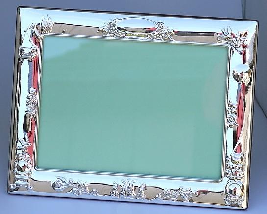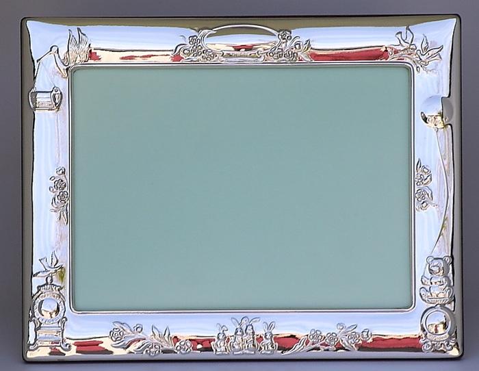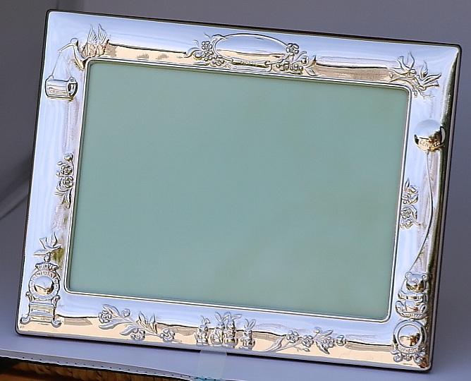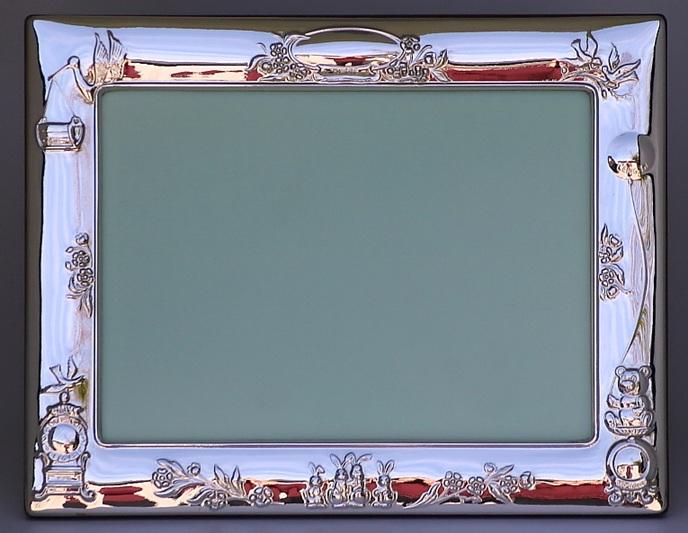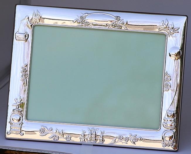 Sterling Silver Childs Stork Photograph Frame – Edinburgh Hallmarks - 7 x 5 Inches